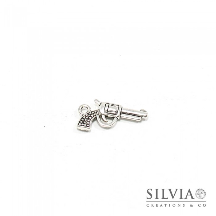 Charm a forma di pistola color argento antico in zama da 22x12