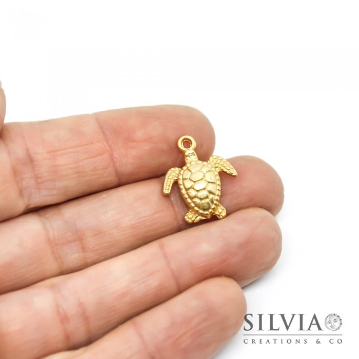 Charm a forma di tartaruga color oro opaco in zama da 18x15 mm. Confezione da 1 pezzo.