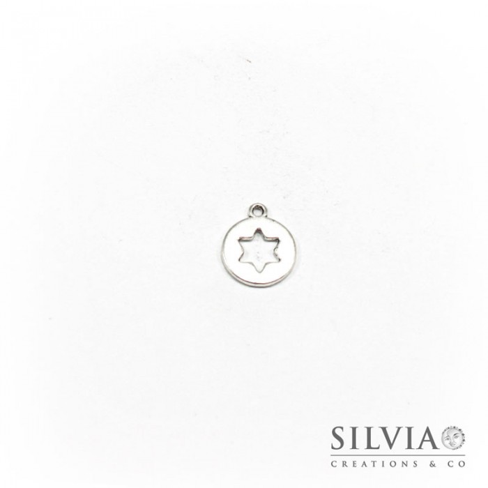 Charm a forma di tondo con stella argento antico in zama 18x15 mm