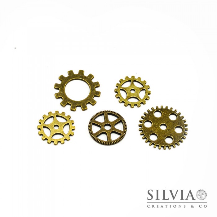 Charm a forma di ingranaggi steampunk bronzo forma casuale x 5pz