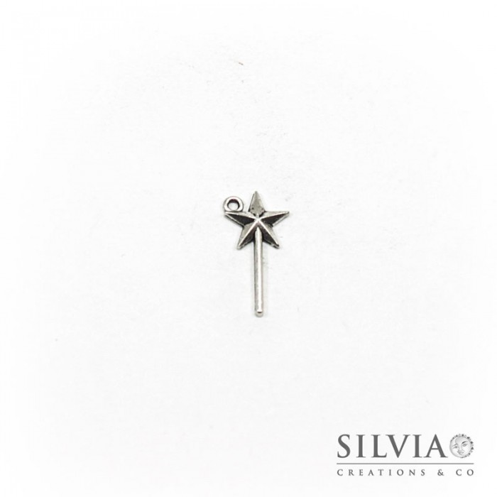 Charm a forma di bacchetta magica argento antico in zama 26x12 mm