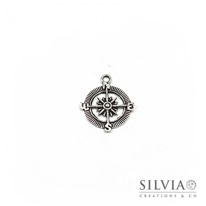 Charm a forma di bussola argento antico in zama 30x25 mm