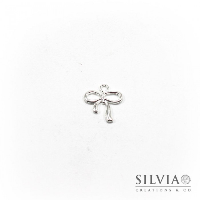 Charm a forma di fiocco a nastro color argento in zama da 20x18 mm. Confezione da 1 pezzo.