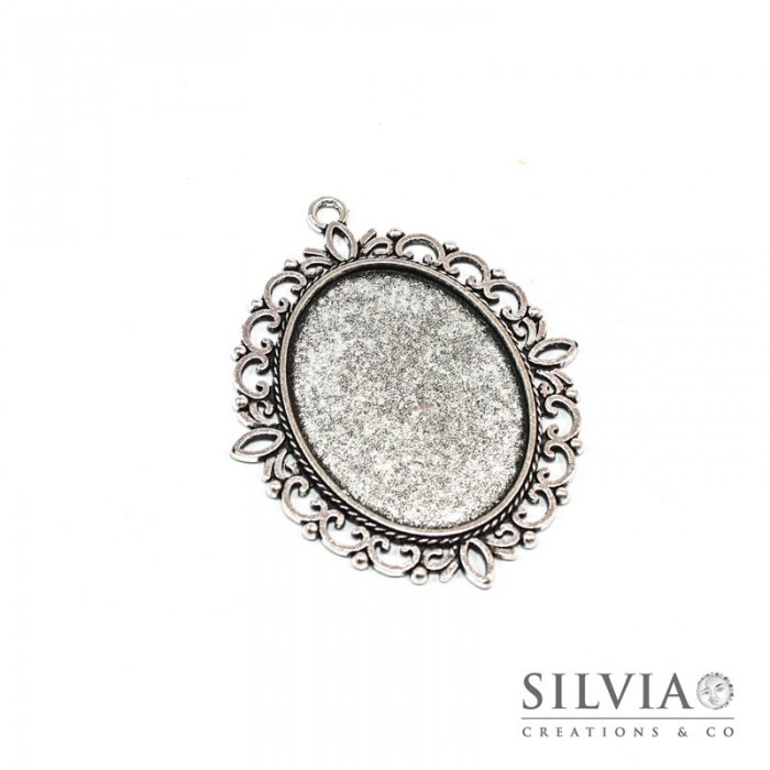 Base cammeo ovale argento antico 61x42 mm vassoio 40x30 mm