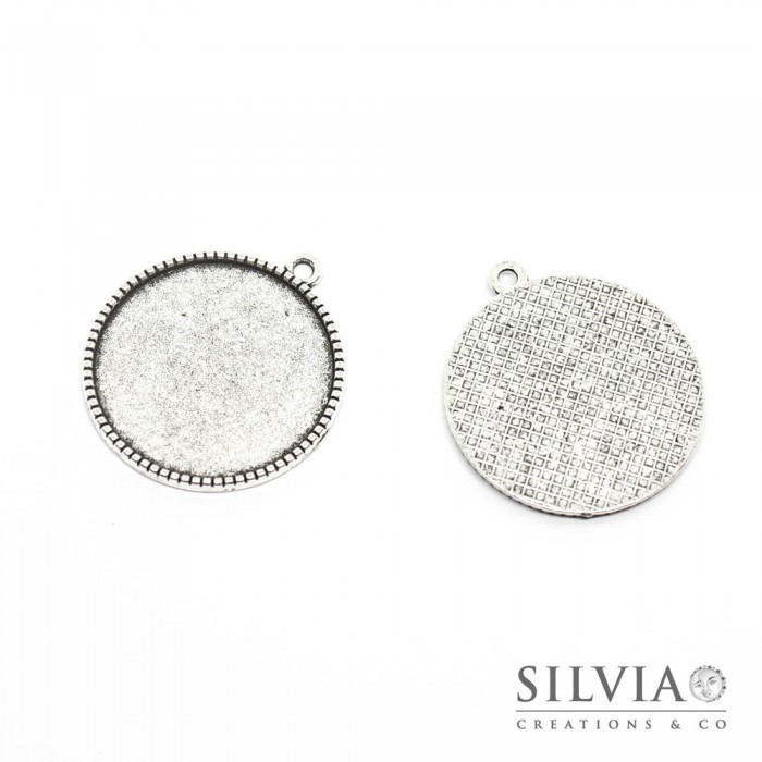 Base cammeo tonda argento antico 30x27 mm vassoio 25 mm
