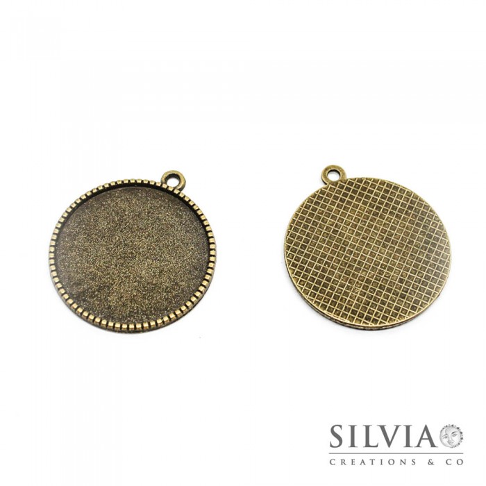 Base cammeo tonda bronzo in ottone da 30x27 mm con vassoio