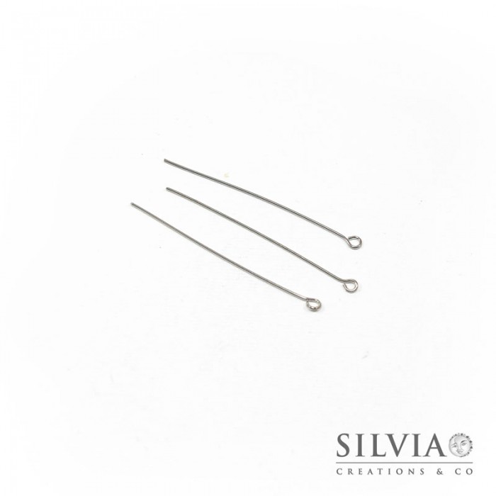 Chiodo con asola a 9 color rodio in ottone da 50x0.7 mm. Confezione da 50 pezzi.