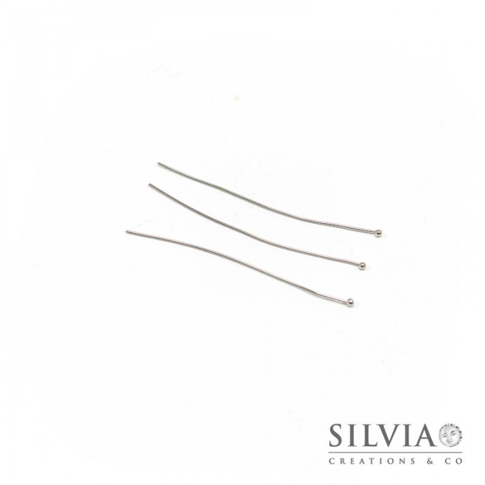 Chiodo con testa a pallina rodio in ottone da 50x0.6 mm x 50pz