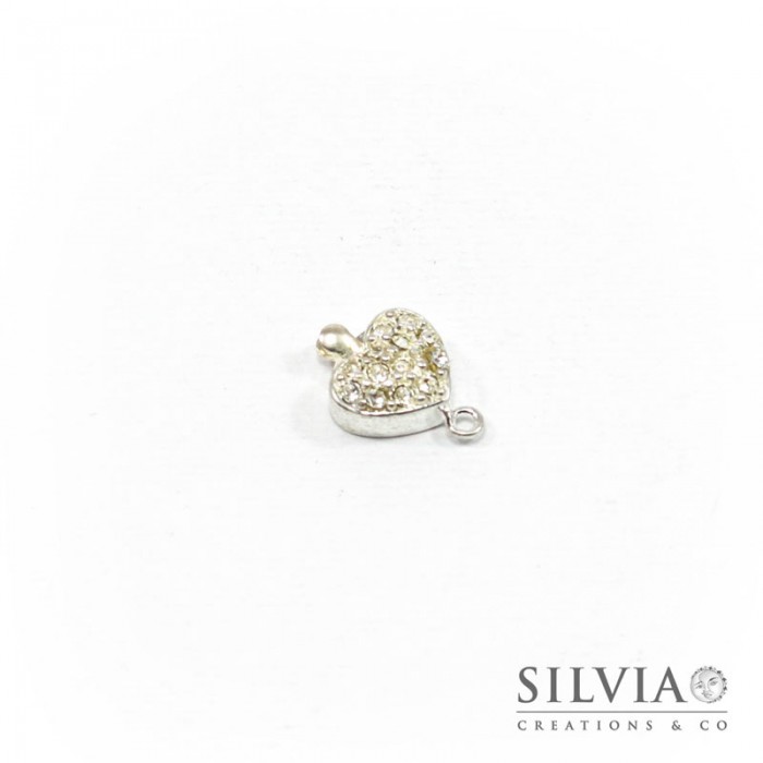 Chiusura a cuore con strass argento in ottone 15x10 mm