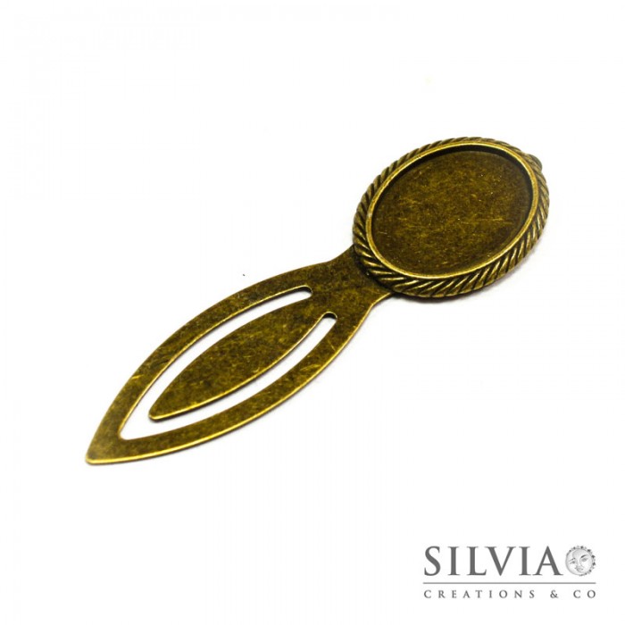 Segnalibro con cammeo bronzo in zama da 80x24 mm con vassoio da 25x18mm. Questa base può essere decorata applicando un cammeo, un’immagine sigillata con la resina o con vetrino, con un cristallo cabochon, oppure può essere decorata con la pasta sintetica (fimo) creando un soggetto con effetto 3d. Anallergico, senza nichel, cadmio e piombo. Confezione da 1 pezzo.