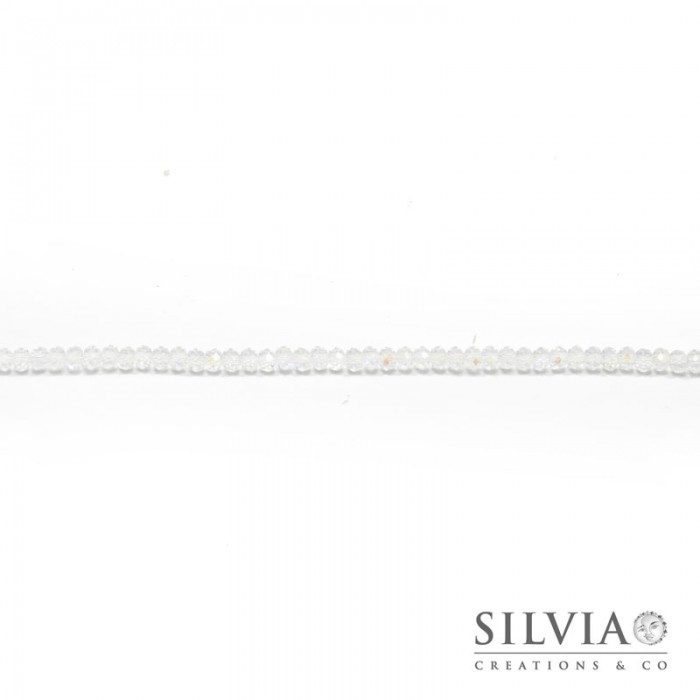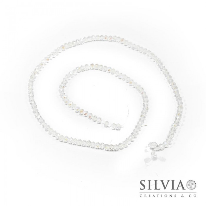 Filo di cristalli a rondella color cristallo effetto aurora boreale da 4x3 mm. Confezione da 1 filo.