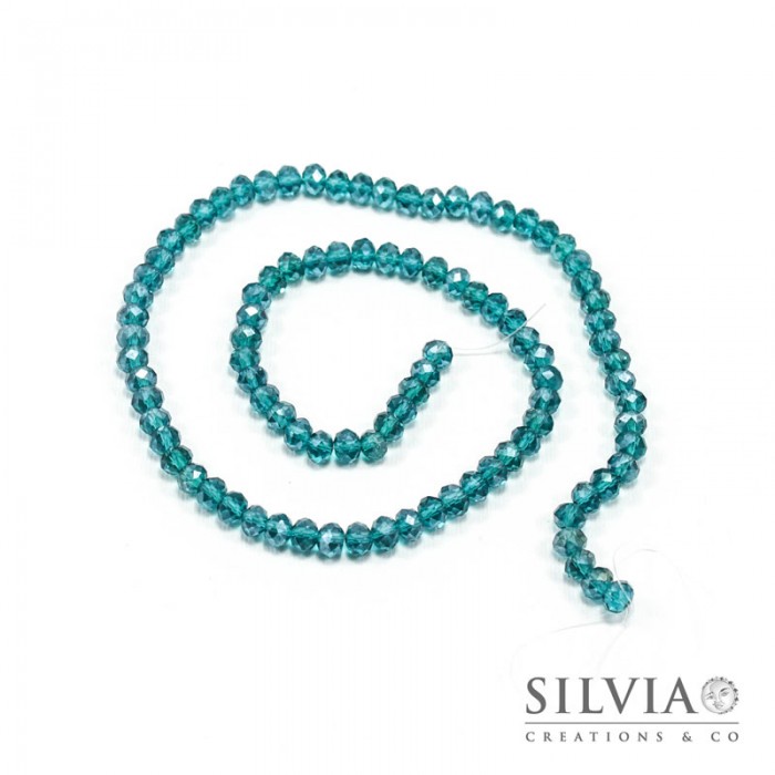 Filo di cristalli a rondella color indicolite effetto aurora boreale da 6x4 mm. Confezione da 1 filo.