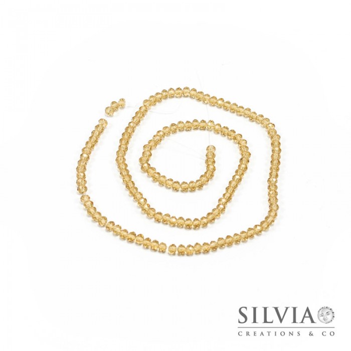 Filo di cristalli a rondella color topazio chiaro da 4x3 mm. Confezione da 1 filo.