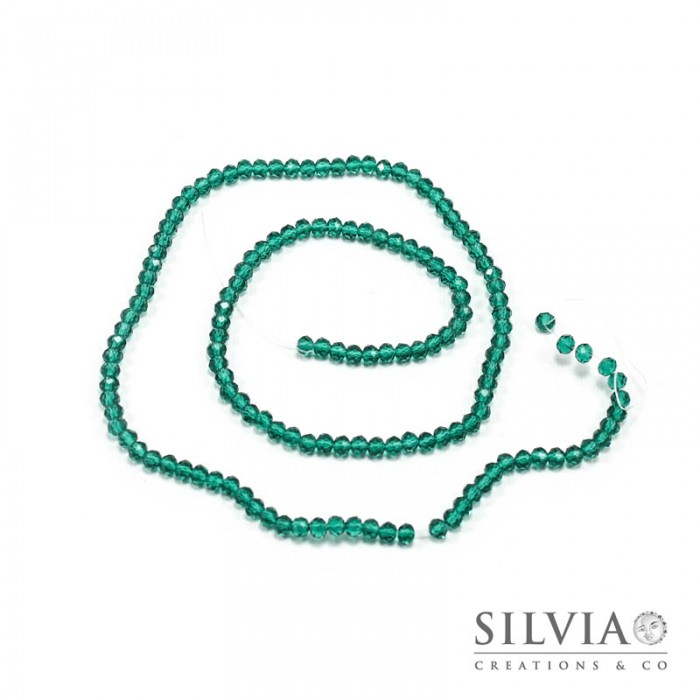 Filo di cristalli a rondella color verde smeraldo da 4x3 mm. Confezione da 1 filo.