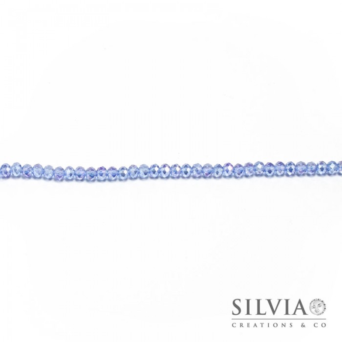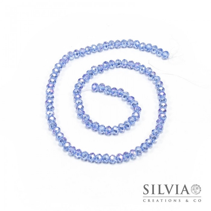 Filo di cristalli a rondella color zaffiro chiaro effetto aurora boreale da 6x4 mm. Confezione da 1 filo.