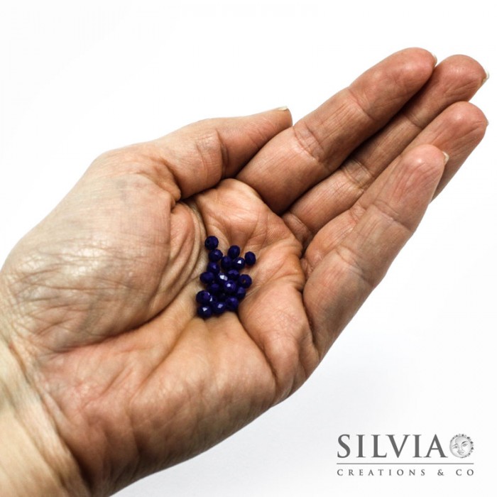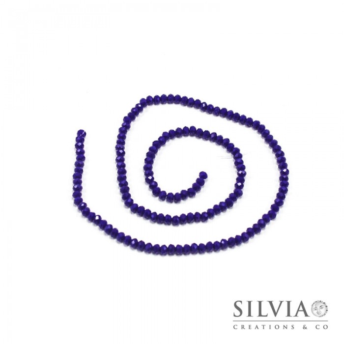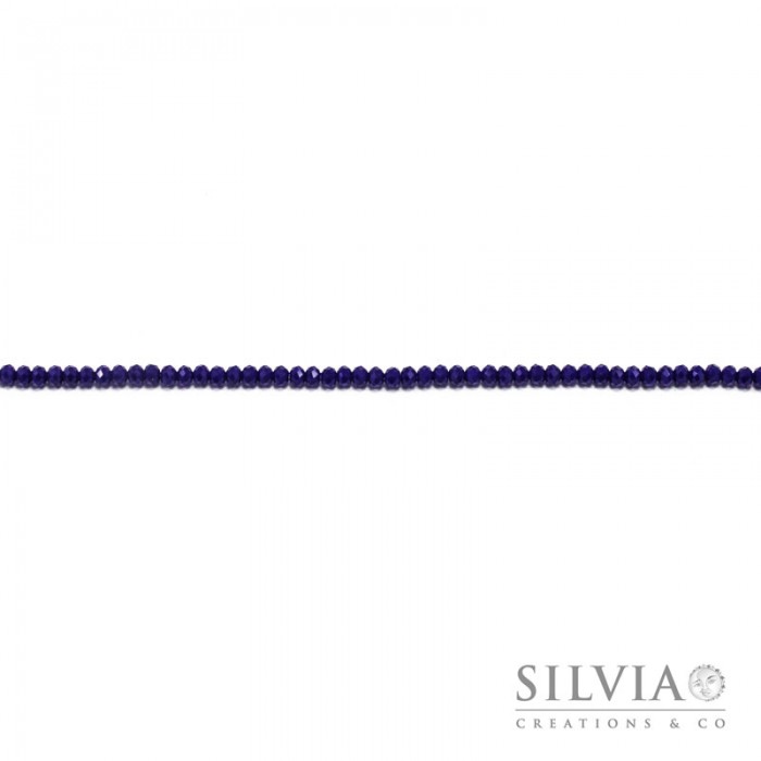 Filo di cristalli a rondella color zaffiro scuro pieno da 4x3 mm. Confezione da 1 filo.