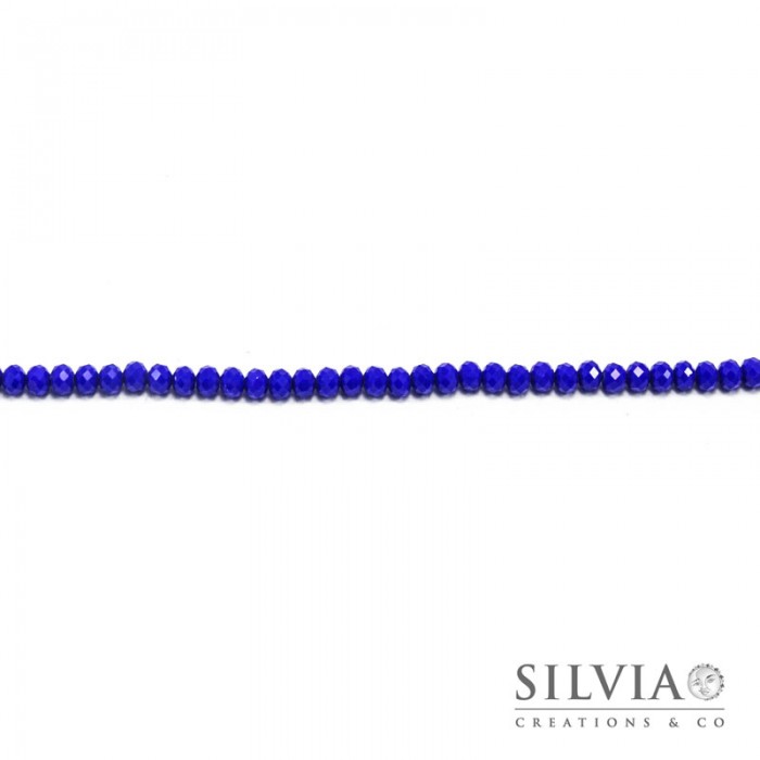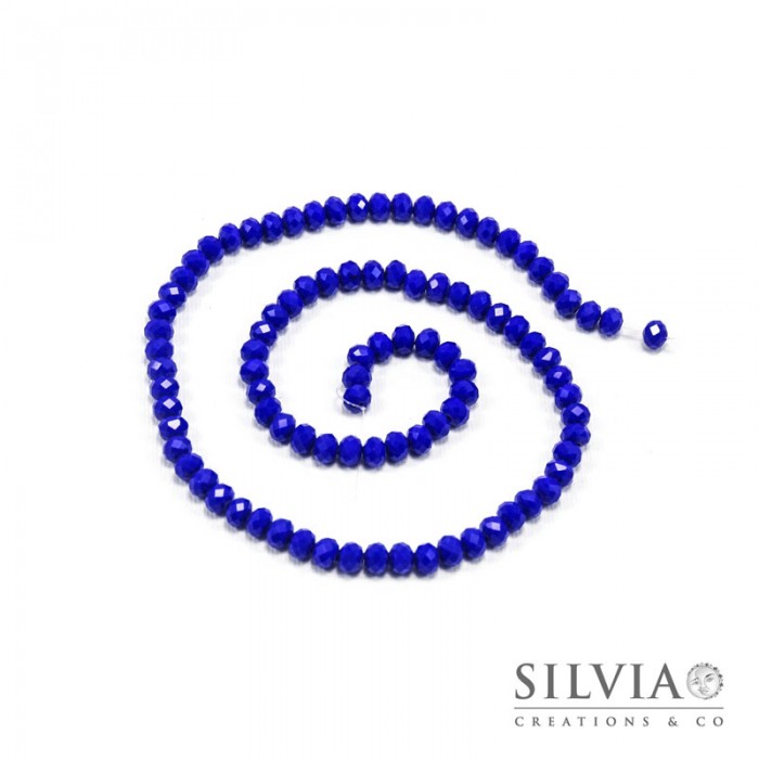 Filo di cristalli a rondella color zaffiro scuro pieno da 6x4 mm. Confezione da 1 filo.