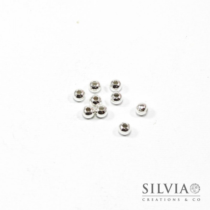 Perla color argento in ferro da 5 mm di diametro con foro da 2 mm. Confezione da 100 pezzi.