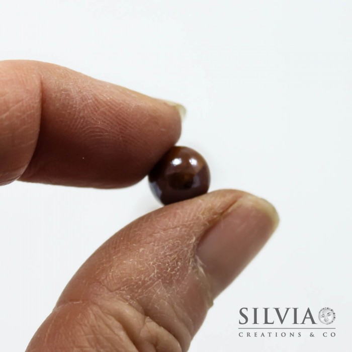 Perla in ceramica marrone lucida. La perla presenta una forma tonda, misura 8 mm di diametro ed ha un foro di 2 mm. Confezione da 1 pezzo.