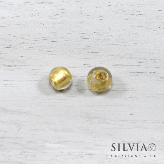 Perla in vetro di Murano color oro con foglia argento. La perla presenta una forma tonda, misura 10 mm di diametro ed ha uno spessore di 10 mm. Confezione da 1 pezzo.