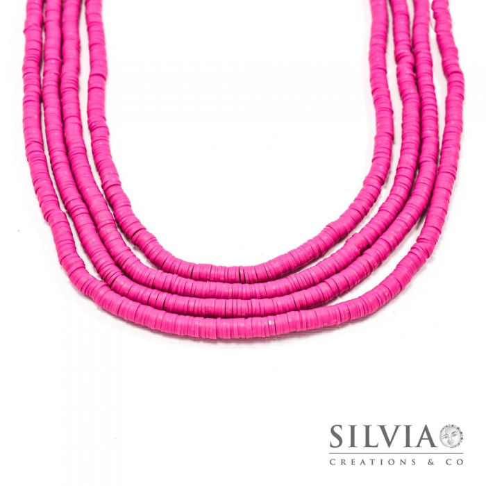 Filo di perle a disco fucsia in pasta polimerica 6x1 mm