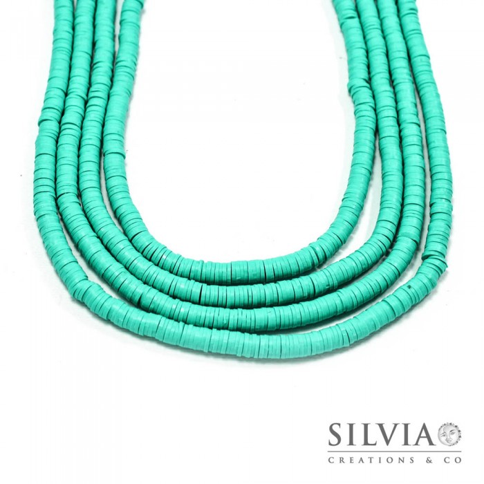 • Filo di perle a disco turchese in pasta polimerica 6x1 mm