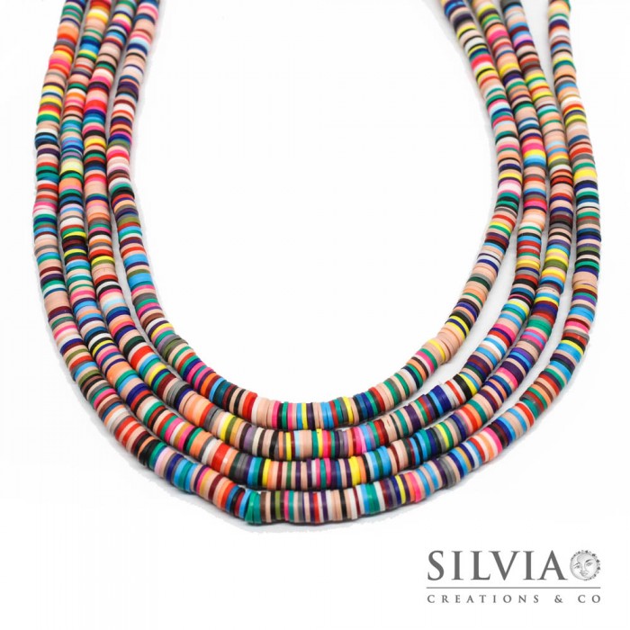 Filo di perle a disco multicolor in pasta polimerica 6x1 mm