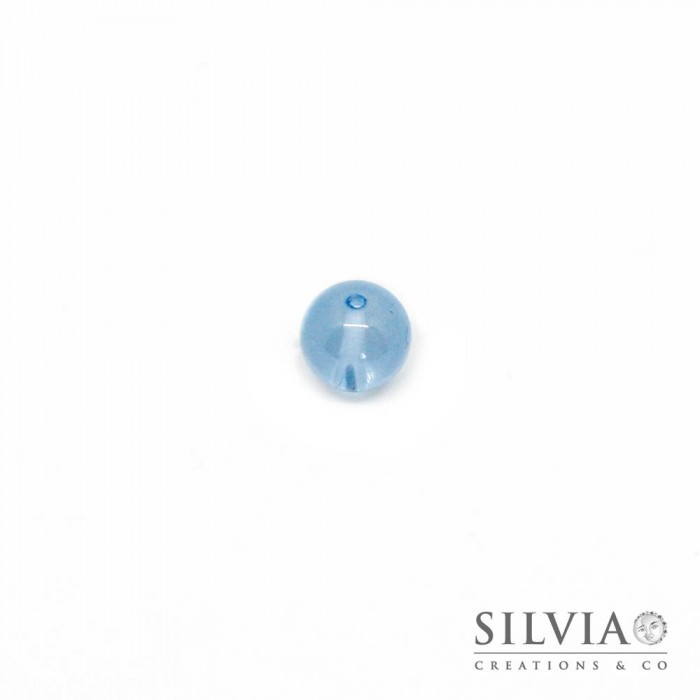 Perla in vetro color zaffiro chiaro trasparente. La perla presenta una forma tonda, misura 10 mm di diametro ed ha uno spessore di 10 mm.