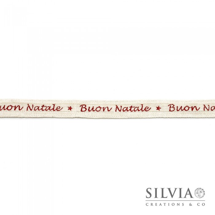Nastro cotone panna con scritta “buon natale” 16 mm x 1m