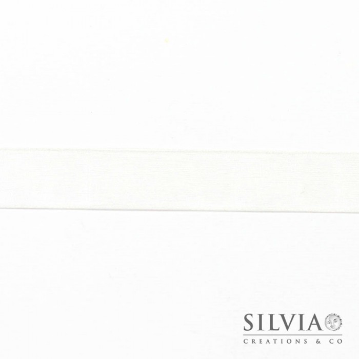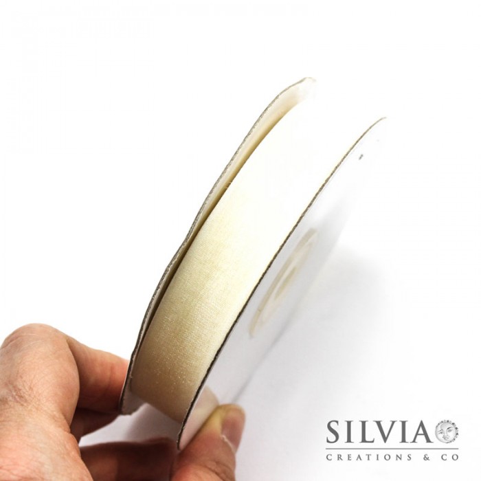 Nastro organza color panna da 16 mm. Ideale per confezionare bomboniere, decorare pacchi regalo, ecc. Questo prodotto è venduto in rotoli da 50 metri