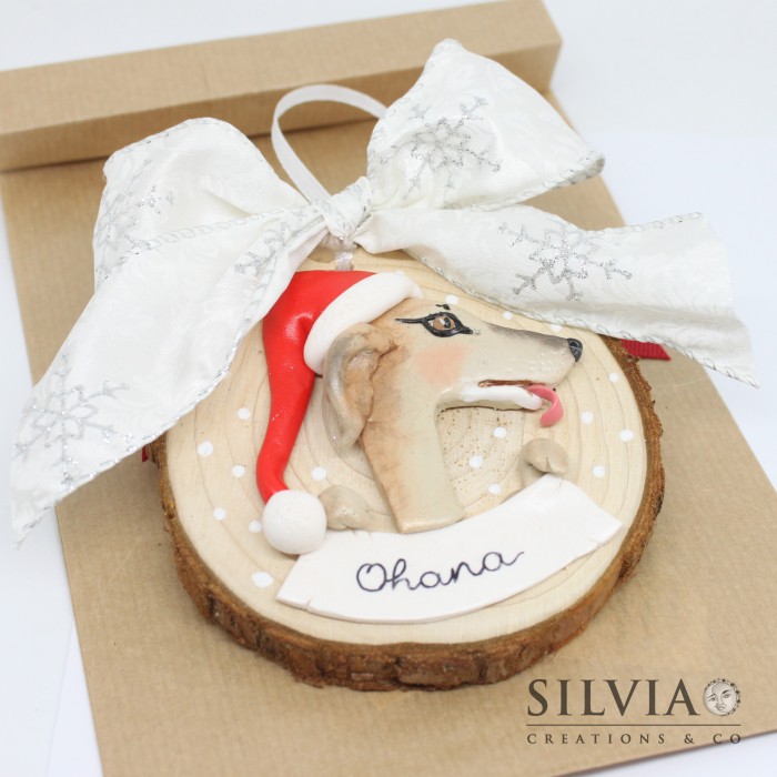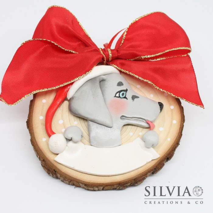 Si tratta di una creazione personalizzata, posso modellare a mano con pasta sintetica fimo il musetto del vostro animale (cane, gatto, coniglio, ecc) che con le zampe regge una targhetta su cui scriverò il nome che desiderate oppure una breve frase (es. "Buon Natale 2021!" ). Vi basterà compilare la form presente vicino al prezzo!