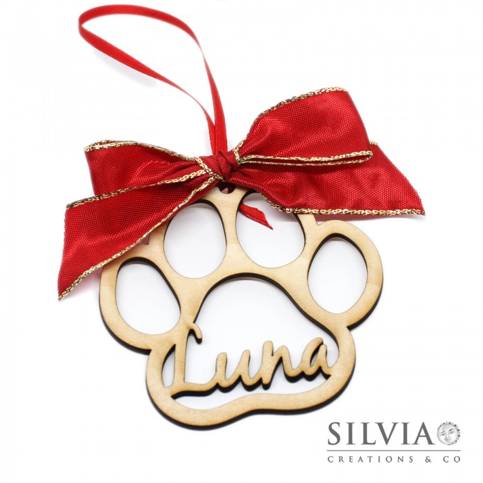 Decorazione natalizia con nome e zampa in filigrana