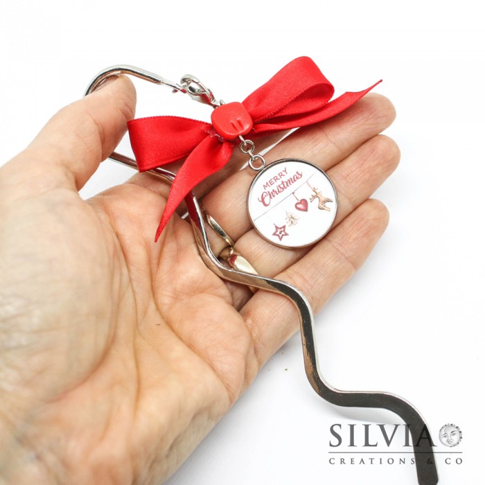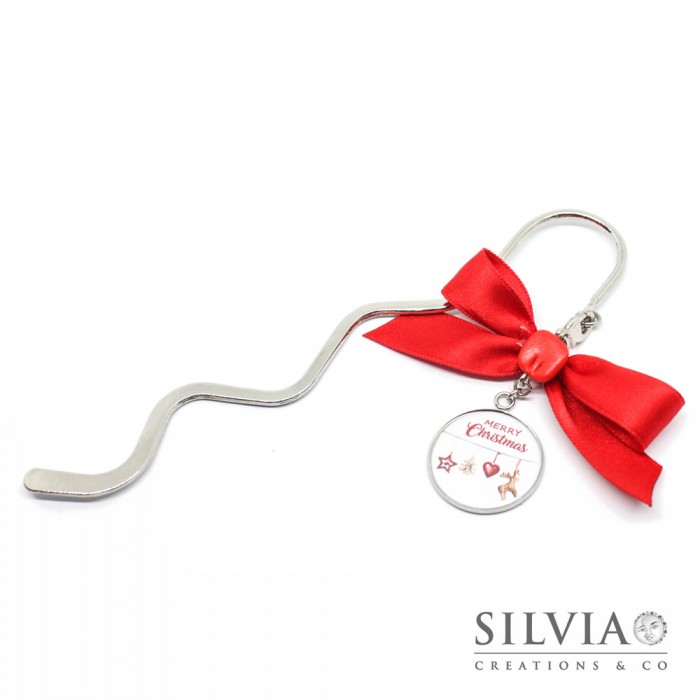 Segnalibro natalizio con scritta Merry Christmas e fiocco rosso