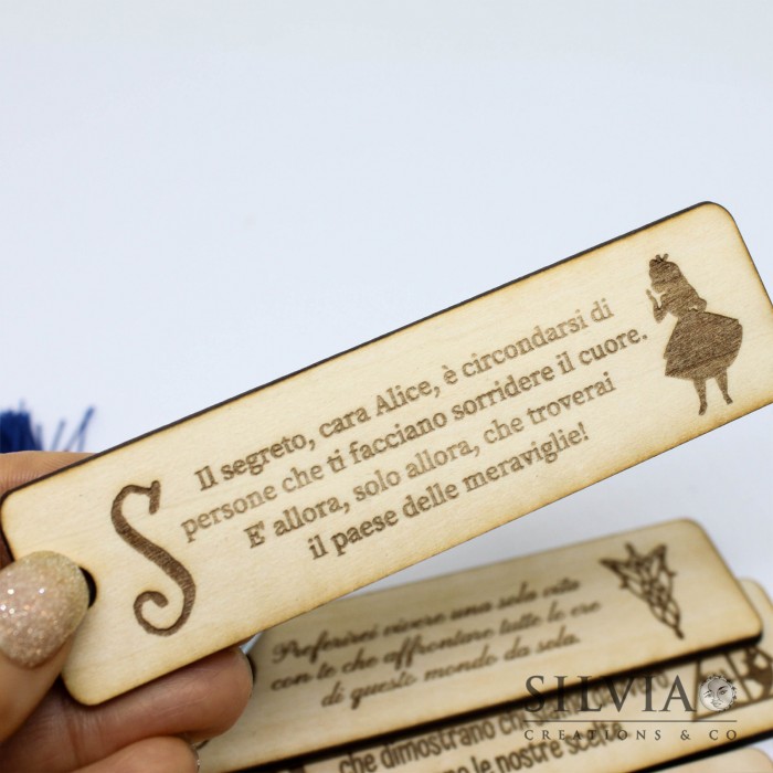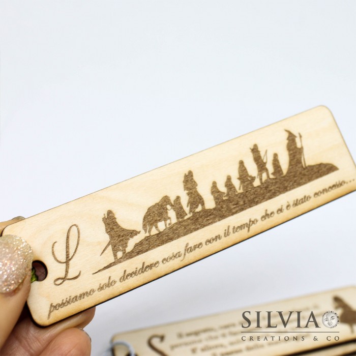 Il segnalibro è di legno e misura 11x3 cm. Posso incidere una frase, una lettera iniziale, un nome o un disegno. Prima di inserire il portachiavi nel carrello, aggiungete la vostra personalizzazione, indicato iniziale, frase, disegno e colore della nappina.