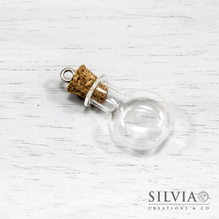 Miniatura di una bottiglietta di vetro a forma tonda e