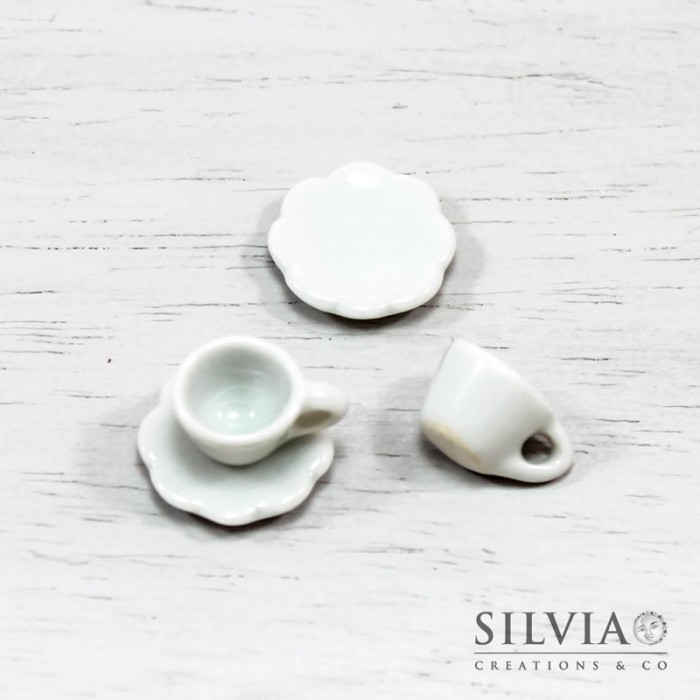 Set tazzina e piattino a fiore in ceramica bianca da 16x09x15 mm
