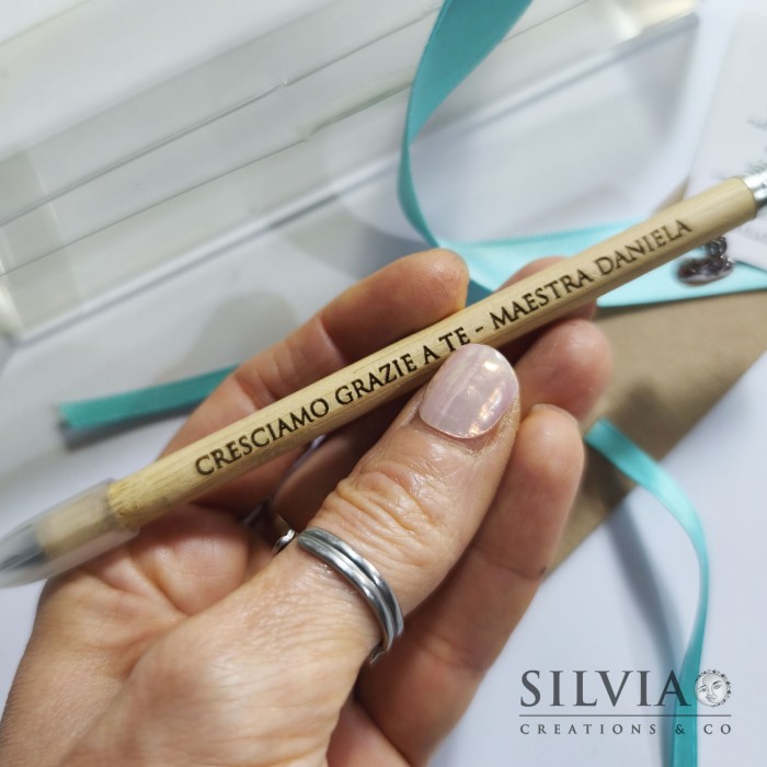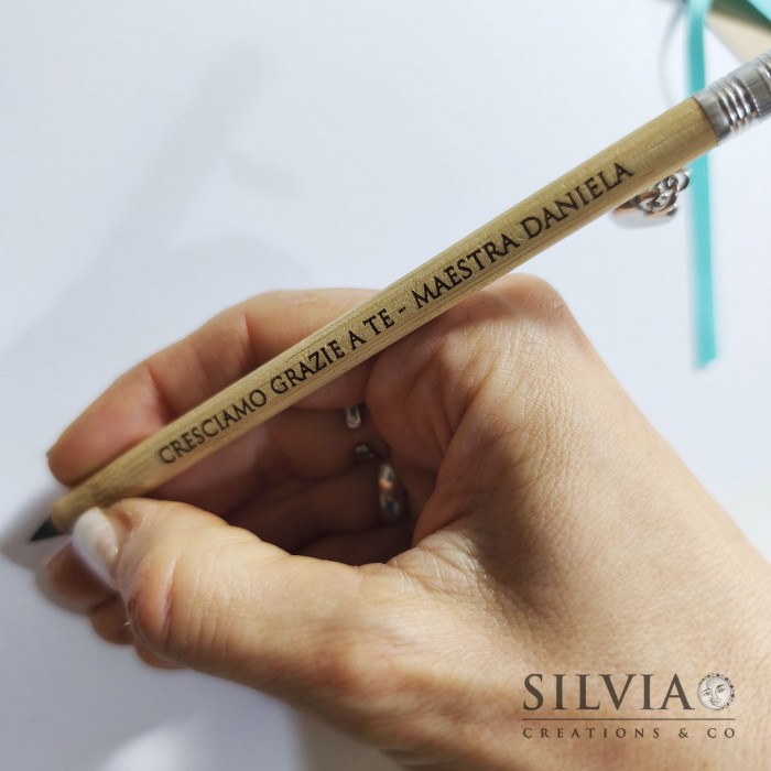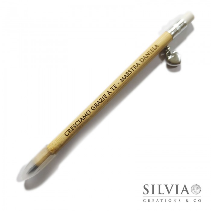 La matita eterna è realizzata in bambù ed è possibile personalizzarla con un'incisione e un ciondolo a scelta.