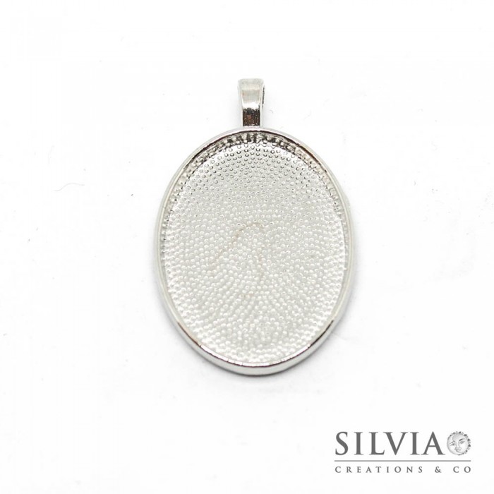 cammeo ovale color rodio in zama da 39x25 mm con vassoio da 30x22.5 mm. Questa