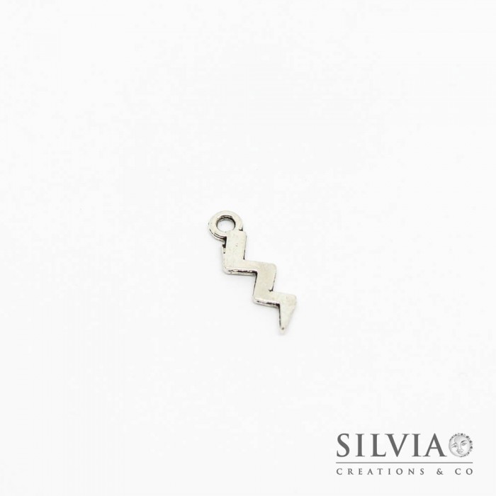 Charm a forma di fulmine (saetta) color argento antico in zama da 16x5 mm. Confezione da 1