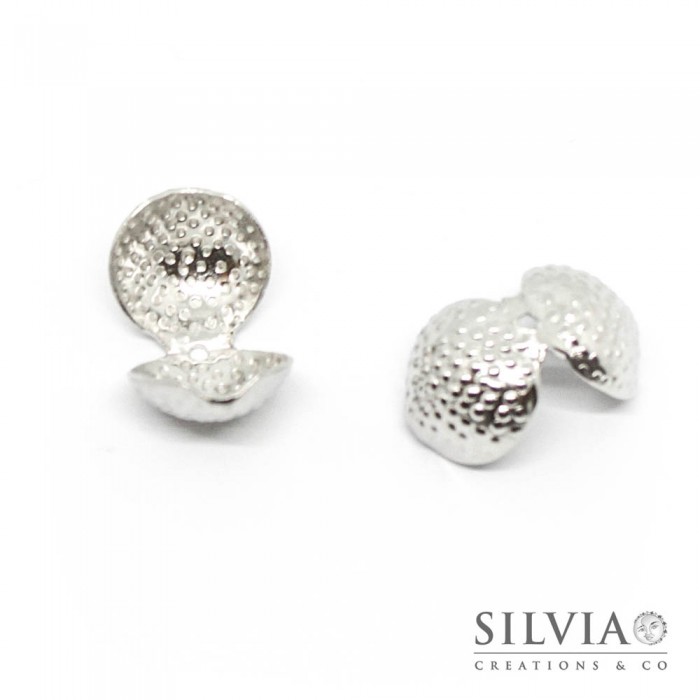 Coprinodo a conchiglia color rodio in ottone da 13 mm. Confezione da 2 pezzi.