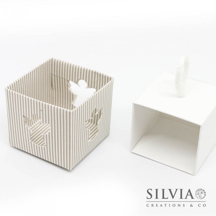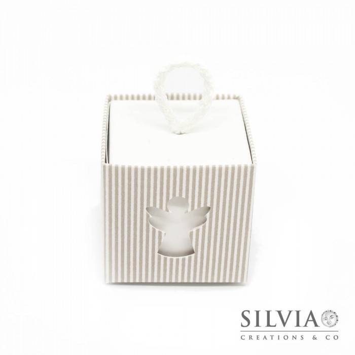 Scatolina quadrata millerighe tortora con angelo per bomboniere
