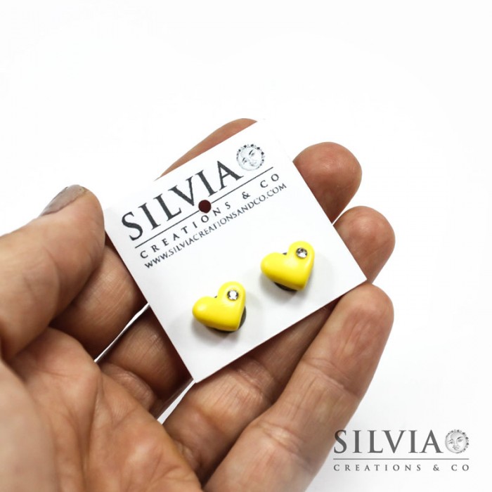 fatti a mano. Il ciondolo misura circa 10 mm ed è a forma di cuore color giallo