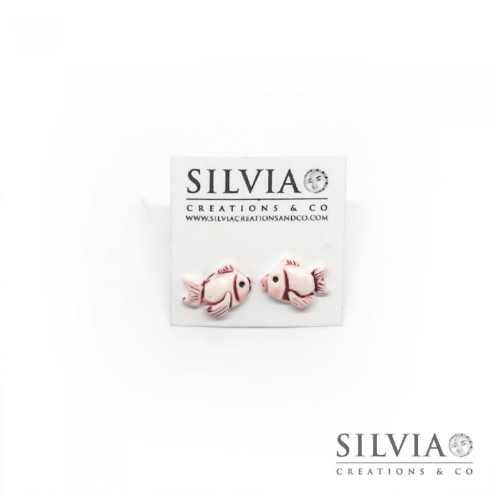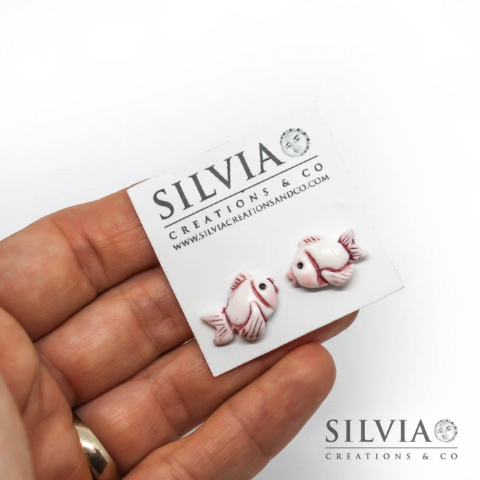 ciondolo misura circa 15 mm ed è a forma di pesce bianco e rosa. Il pesce è