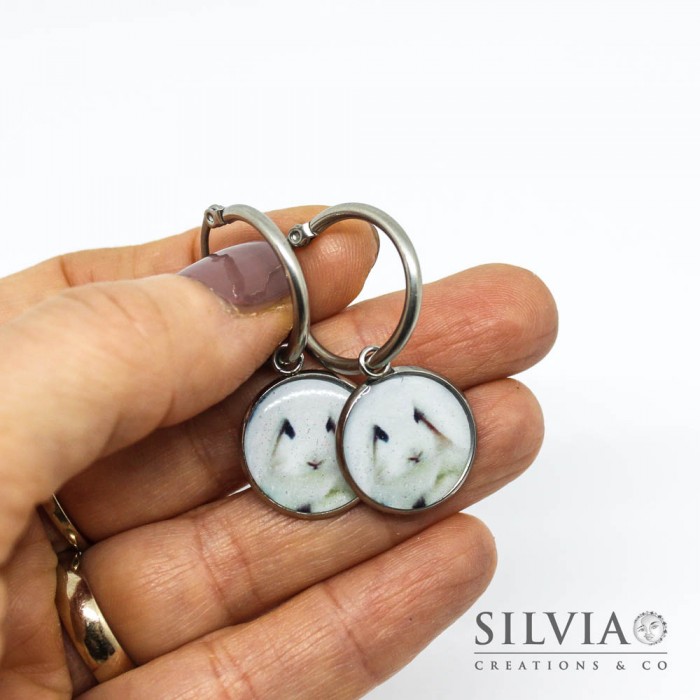 Orecchini cerchio in acciaio personalizzati con fotografia cane gatto o coniglio