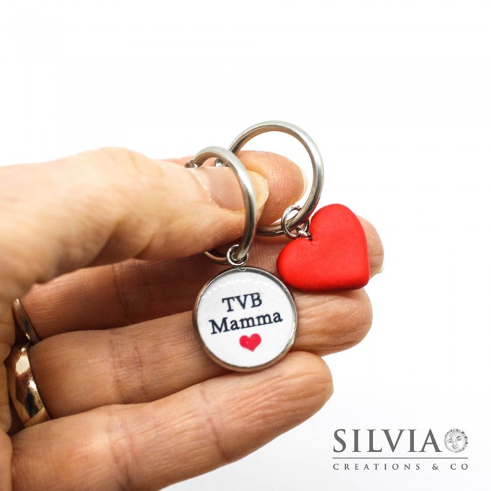 Ho realizzato questi orecchini utilizzando una base in acciaio a cerchio da 2 cm di diametro. All'interno del cerchio ho inserito due ciondoli diversi, in uno un cuore rosso realizzato a mano in pasta sintetica fimo. Nell'altro cerchio ho inserito un ciondolo costituito da una base cabochon rotonda contenente un'immagine con la scritta "TVB Mamma". L'ho realizzato utilizzando la tecnica della resina colata. Questa tecnica consiste nella colatura di uno strato di resina all’interno di un cabochon rendendo impermeabile e incorruttibile il suo contenuto. Il cabochon che ho utilizzato è in acciaio e misura 16 mm di diametro.
