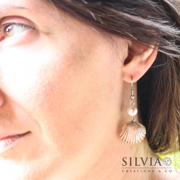 con la foglia argento. Le perline Swarovski sono bianche e misurano 8 mm. Conchiglia