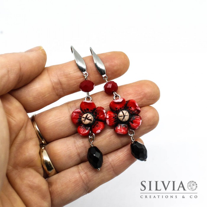 forma di fiore papavero rosso. Questo fiore è fissato ad un cristallo a rondella rosso