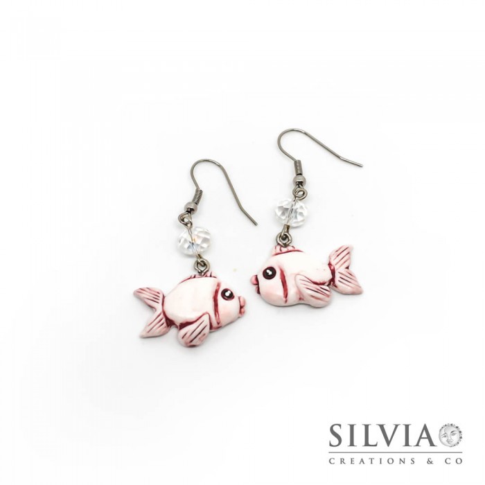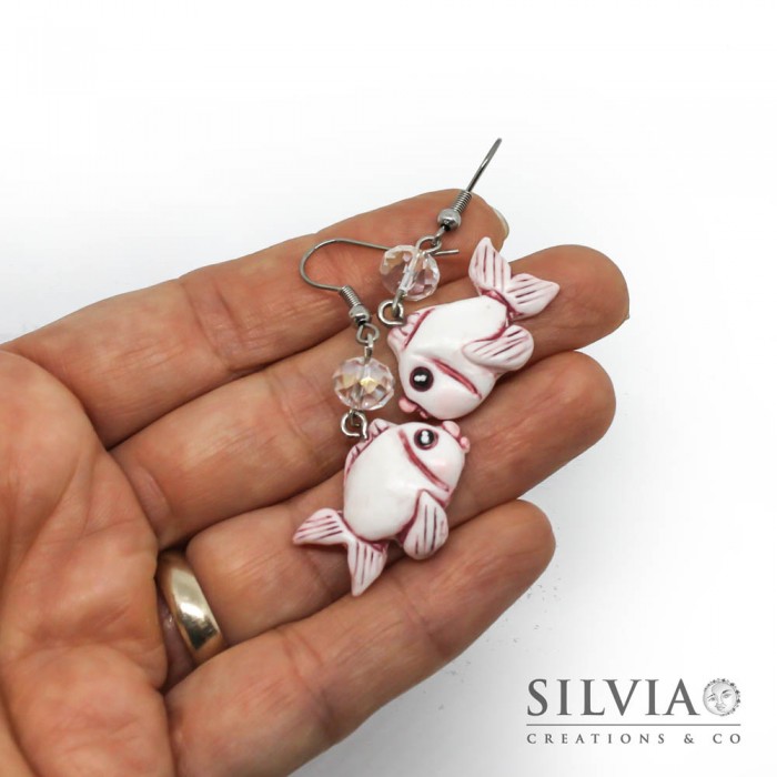 cristalli a rondella. Il ciondolo misura circa 25 mm ed è a forma di pesce bianco