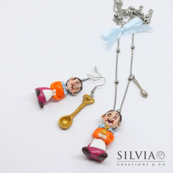 un cucchiaino sempre realizzato a mano in pasta sintetica fimo. La lunghezza complessiva degli orecchini,