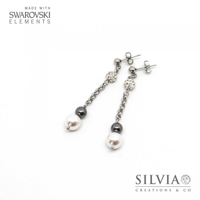 Orecchini a perno con perle Swarovski bianche e grige e catena